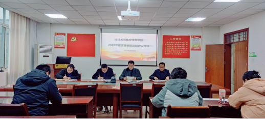 2023年2月23日下午3:00,太阳集团tyc138党委在二楼会议室召开2022年度党支部书记述职评议考核会议。会议由党委书记陈志远同志主持,院党委委员、支部书记、党委组织员参加会议。
