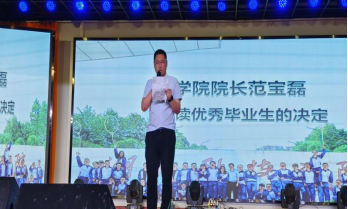 核化生院院长范宝磊上台深情寄语本届毕业生:青春由磨砺而出彩,人生因奋斗而升华,同学们即将站在新的人生起点,衷心祝福同学们一帆风顺,前程似锦!