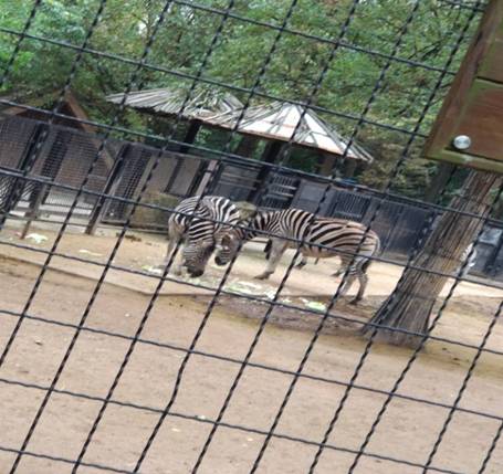 斑马们看起来心情还不错,一边踱步一边看着院外的行人。