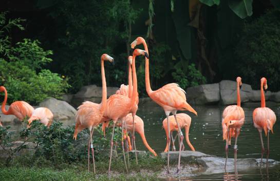 远远望去,红腿如林,低头饮水的曲线赏心悦目。