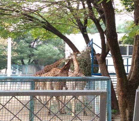 转到了长颈鹿的园区,它们优雅的聚在一起进食,很有秩序。