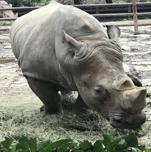 看不出来体型这么庞大的白犀进食时居然如此缓慢优雅,从头至尾没有抬起头来看过游客。