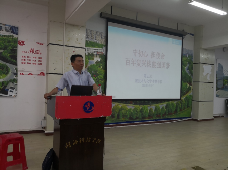 (编辑:汪志伟 审核:陈志远)值此我校开展2021级新生入学教育系列活动之际,恰逢全国科普日活动,核化生院副院长陈志远教授应校团委邀请,于9月17日上午,为新生们带来了一场“守初心、担使命 百年复兴核能强国梦”为主题的科普讲座,活动现场坐满了来自全校各专业的新生代表,活动同时采用了线上直播的方式,以方便无法亲临现场的新生们一起聆听此次核能科普盛宴。