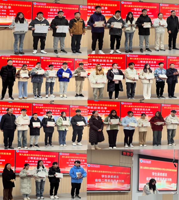 据悉,湖北省普通高校大学生化学实验技能竞赛是湖北省教育厅主办,湖北省化学化工学会、湖北省化学化工实验教学示范中心联席会协办,省内各高校申请承办的大型化学实验教学交流活动,是我省普通高校化学化工相关专业规模和影响力最大的常规实验教学技能竞赛之一,已经成为检验各高校实验教学成效、各高校学生交流竞技的经典赛事。大赛旨在引导本科生积极参与实验教学建设,契合教学改革需求,促进实验教与学的相互促进,实现教学相长。我院高度重视实践教学工作以及对学生实践能力、创新能力的培养。接到比赛通知后,学院精心组织初赛,竞赛组委会严格按照初赛成绩选拔24位同学进入化学实验技能竞赛集训队伍,李艳、刘洁、王俊、胡鹏、李芬五位老师对参赛选手进行了为期40天的化学实验基础知识、基本技能、实验操作和实验设计强化训练。最后,经过两天紧张激烈的决赛角逐,21级应化班刘艳、吴林润同学分别荣获专业组二、三等奖,22级化学班冯施文同学荣获优秀奖。经院领导同意,决定对此次竞赛初赛前30名同学和决赛参赛同学进行表彰。