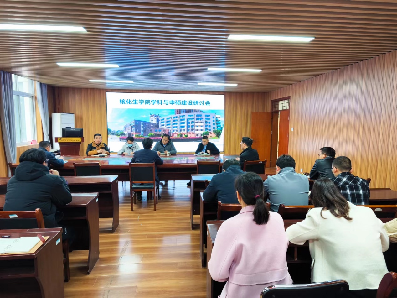 首先,范宝磊院长汇报了核化生学院在科研、教学、学工、党建等方面所取得的成果以及核化生各个专业申报硕士学位应具备的基本条件进行了简要介绍,分析了申硕过程中的优势及存在的短板与不足。