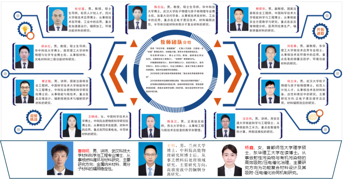 7、科研环境好:近5年核专业教职工获批省级及以上科研项目、教学项目10余项,省级及以上大学生创新创业项目6项,发表SCI论文30余篇,指导省级优秀毕业论文20余篇。核专业拥有能量为1MeV的大型电子加速器装置、高精密的正电子湮没谱仪、低本底γ能谱分析仪、核技术综合实验平台、材料辐射改性技术湖北省工程实验室、材料辐射改性技术国家地方联合工程实验室等科研平台,为教师、学生提供“肥沃的科研土壤”。