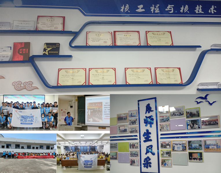 4、人才培养质量高:学科竞赛获奖多,近3年,“核+X”创意大赛中获得国家级和省级奖项20余项、获湖北省大学生课外科技作品“挑战杯”竞赛二等奖3项;大学生创新创业获国家级大创项目5项、省级项目12项;获省优秀毕业论文20余篇;科普活动丰富,获批团中央的“强国有我、核你一起”及“两弹一星”2个核科普团队,开展校内外科普活动百余次。