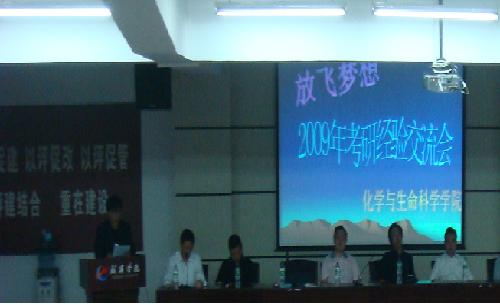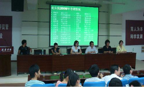 化生院院长孙绍发作了热情洋溢的讲话,对该院今年考研工作做了总结。六位考研学生代表向与会学生介绍了自己的考研经验。