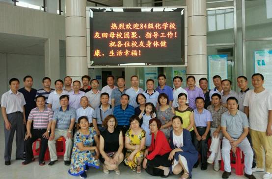 2017年8月12日,84级化学专业毕业生一行30余人回母校,在我院会议室举行了师生座谈会,与我院部分教师欢聚一堂,重温同窗友谊,共享生活点点滴滴。