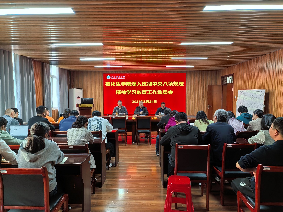 (通讯:熊厚华,审核:彭胜国,张规富)2025年3月24日,核化生学院在二楼会议室召开深入贯彻中央八项规定精神学习教育工作动员会,全体党员参加,学院党委书记张规富主持。
