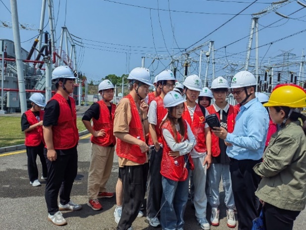 科普讲座活动结束后,一行人来到了咸宁塘角镇变电站参观,认识和了解我国的输变电工程项目。在活动现场,第三方检测机构人员利用专业仪器进行了实时磁场强度监测,并与同学们进行了积极的交流与讨论。