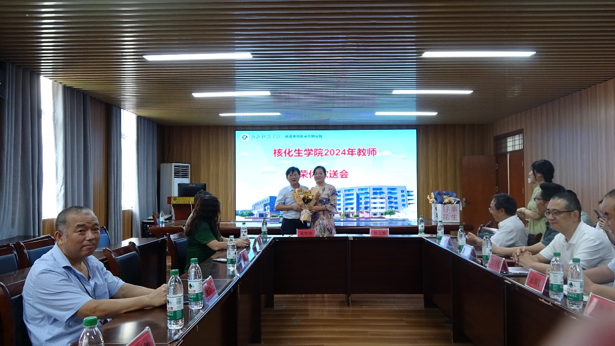 (通讯:熊厚华,审核:彭胜国,张规富)2024年7月5日(星期五)下午16:00,在核化生学院二楼会议室举行退休教师欢送大会,以表达对光荣退休的教师多年来在核化生院辛勤耕耘、无私奉献的感激和敬佩,并借此机会激励青年教师积极成长、追求卓越。此次活动还特邀了工会、离退休处等相关职能部门领导参加,活动不仅弘扬了尊师重教的传统美德,还加强了教师间和部门间的交流与联系,整场活动氛围欢快热烈,大会由学院党委书记张规富教授主持。