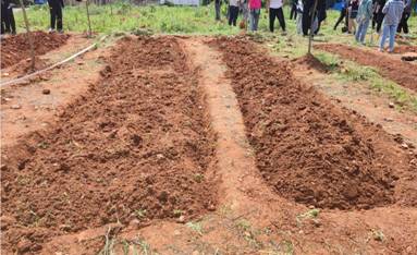 上午9时,大家来到位于核化生大楼后的活动地点。起初,面对杂草丛生、石块堆积的荒草坪,大家显得有些手足无措。在老师的指导下,同学们按各自分工,认真开始工作,有的除草,有的铲土,有的挖地,有的搬运石块、砖块,整个过程有条不紊进行着。烈日当头,大家干得汗流浃背,但没有人叫苦叫累,经过三小时的努力,大家终于将眼前的荒地变成了整整齐齐的土地。
