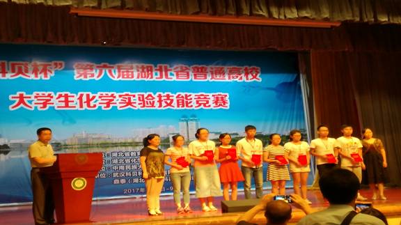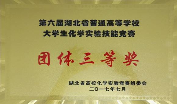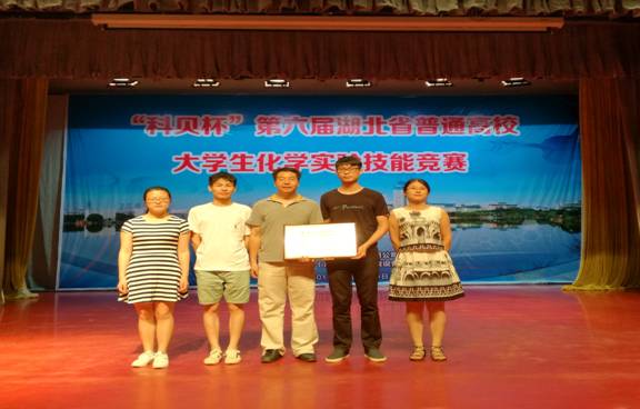 (通讯员:李芬、王军涛)2017年7月7–9日,我校核化生院学子在湖北省教育厅主办、湖北省化学化工学会协办、中南民族大学承办的第六届湖北省普通高校大学生化学实验技能竞赛(专业组)中创造历史纪录,喜获“团体三等奖”。该赛事自2006年首次举办,每届邀请省内包括武汉大学、华中科技大学等全部普通高等院校参加,迄今已连续举办六届。今年我校获得了历史性的突破,收获了标志性的成果。其中,杨亮锋同学荣获个人“一等奖”、孔洪剑同学荣获个人“二等奖”、陈洁华同学荣获个人“三等奖”,参赛的3位选手全部获奖,选手个人得分累加后又喜获“团体三等奖”(团体一、二、三等奖分别仅设一名)。